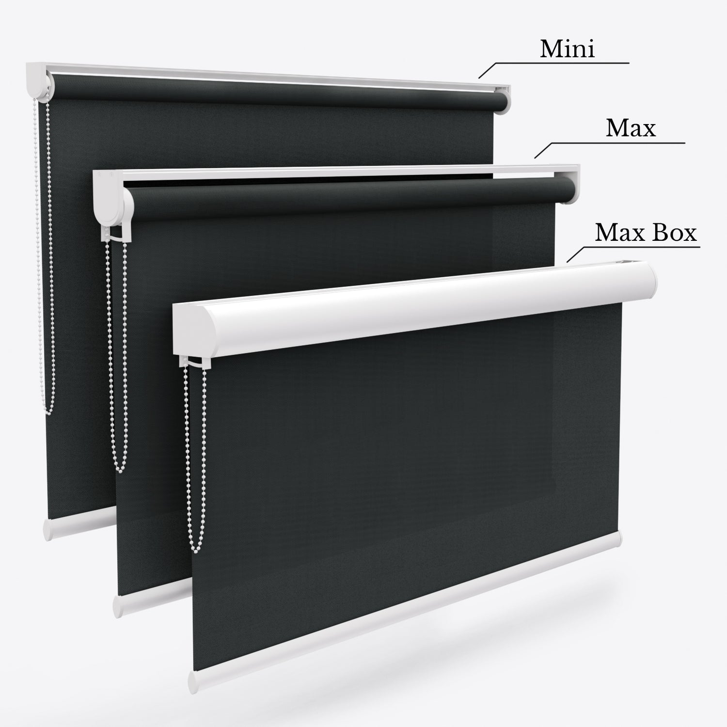 Customisation Options, Choose a white, anthracite, brown or black headrail colour to match your interior. Our Onyx Black Dimout Roller blinds make a striking addition to any room. We provide two different headrail mechanisms– Standard, providing a reliable and cost-efficient option, or Designer for smoother operation and enhanced durability. Both options ensure smooth movement thanks to the innovative beaded loop control mechanism and for maximum durability, you can opt-in for motorised control. Our motorized dimout roller blinds are compatible with Alexa and Google Home, allowing you to control your blinds with voice commands or through your smartphone and even set schedules or routines for your smart home.