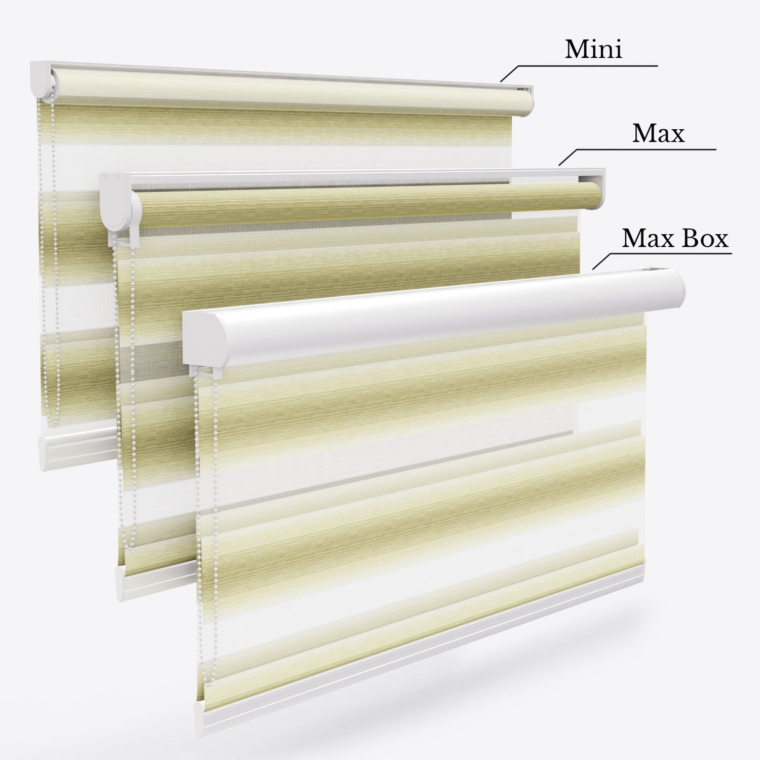 При щори Руло и Ден и Нощ Импресия, моля, имайте предвид, че ширина на текстила ще бъде с 3–4 см по-малка от поръчаната ширина на щората.