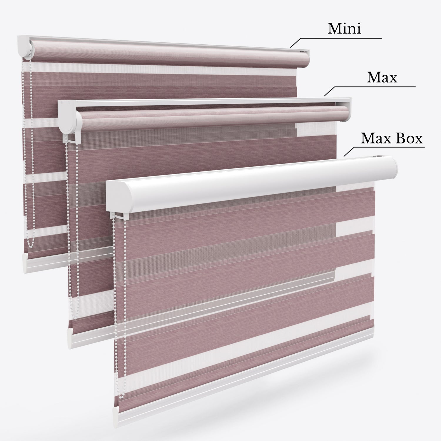 Custom Made for Your Space, the made-to-measure Zen Shades Day and Night Dimout Blinds are crafted to fit your windows and home décor perfectly. Kitchens and bathrooms are well-suited to Twilight Mauve Day and Night Dimout Blinds, providing moisture management and a sophisticated look.