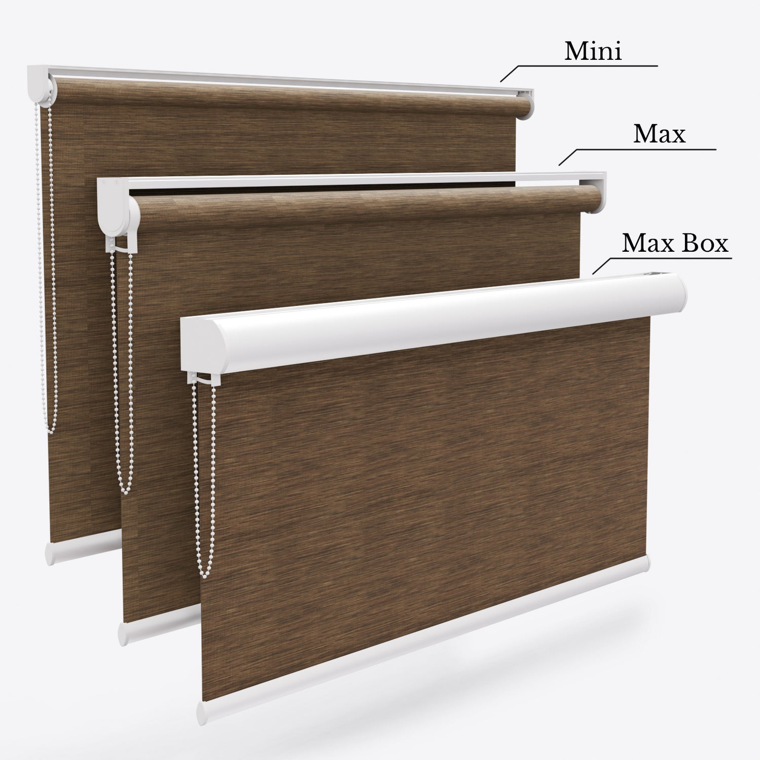 Customisation Options, Choose a white, anthracite, brown or black headrail colour to match your interior. Pale Brown Dimout Roller blinds, where daring design meets elegance. We provide two different headrail mechanisms– Standard, providing a reliable and cost-efficient option, or Designer for smoother operation and enhanced durability. Both options ensure smooth movement thanks to the innovative beaded loop control mechanism and for maximum durability, you can opt-in for motorised control. Our motorized dimout roller blinds are compatible with Alexa and Google Home, allowing you to control your blinds with voice commands or through your smartphone and even set schedules or routines for your smart home.