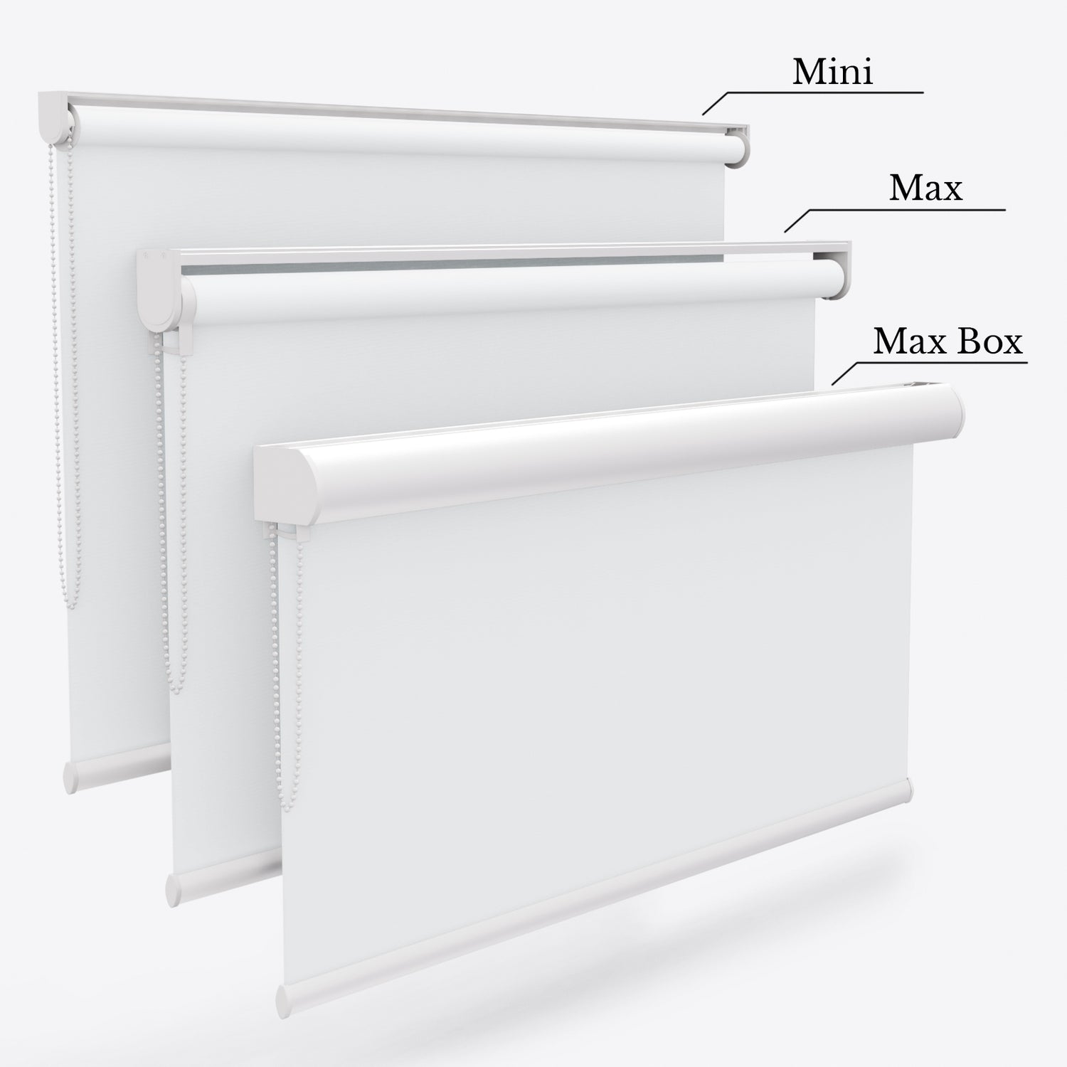 Customisation Options, Choose a white, anthracite, brown or black headrail colour to match your interior. Brilliant White Blackout Roller blinds, an artistic touch for any modern home. We provide two different headrail mechanisms– Standard, providing a reliable and cost-efficient option, or Designer for smoother operation and enhanced durability. Both options ensure smooth movement thanks to the innovative beaded loop control mechanism and for maximum durability, you can opt-in for motorised control.